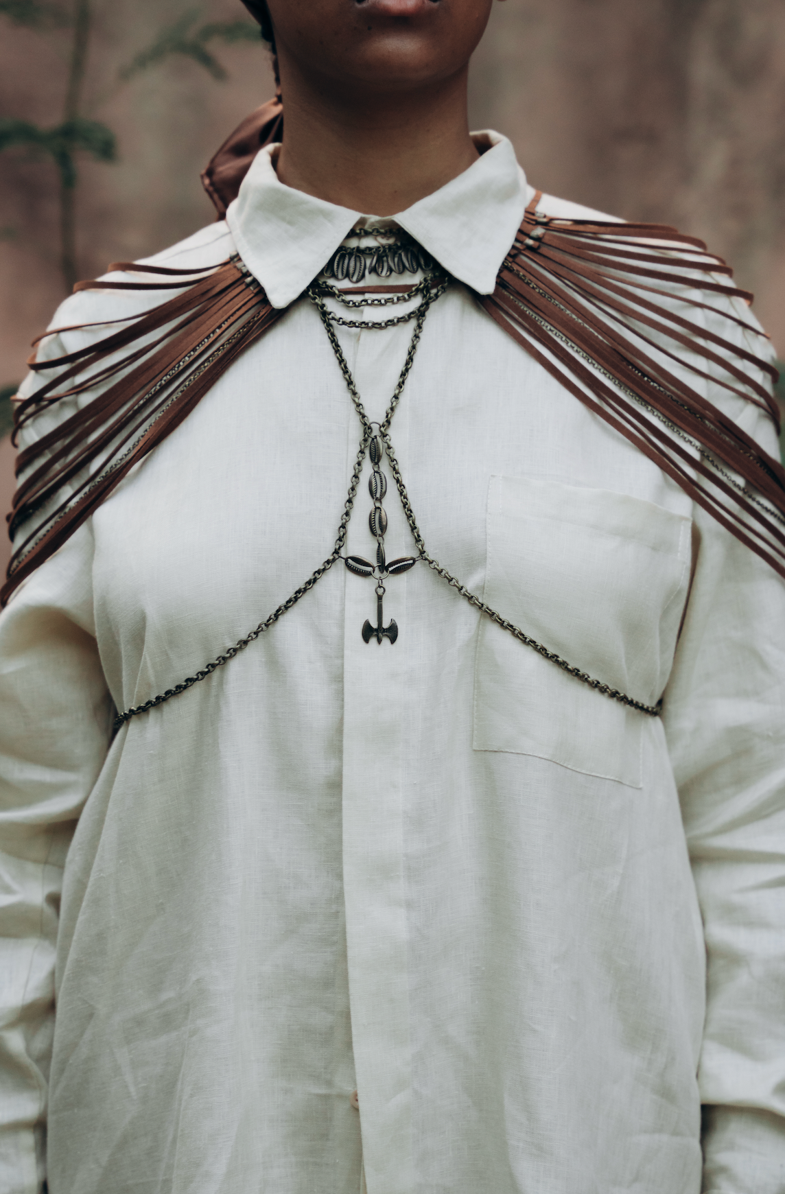 Colar amplo em Couro e Latão